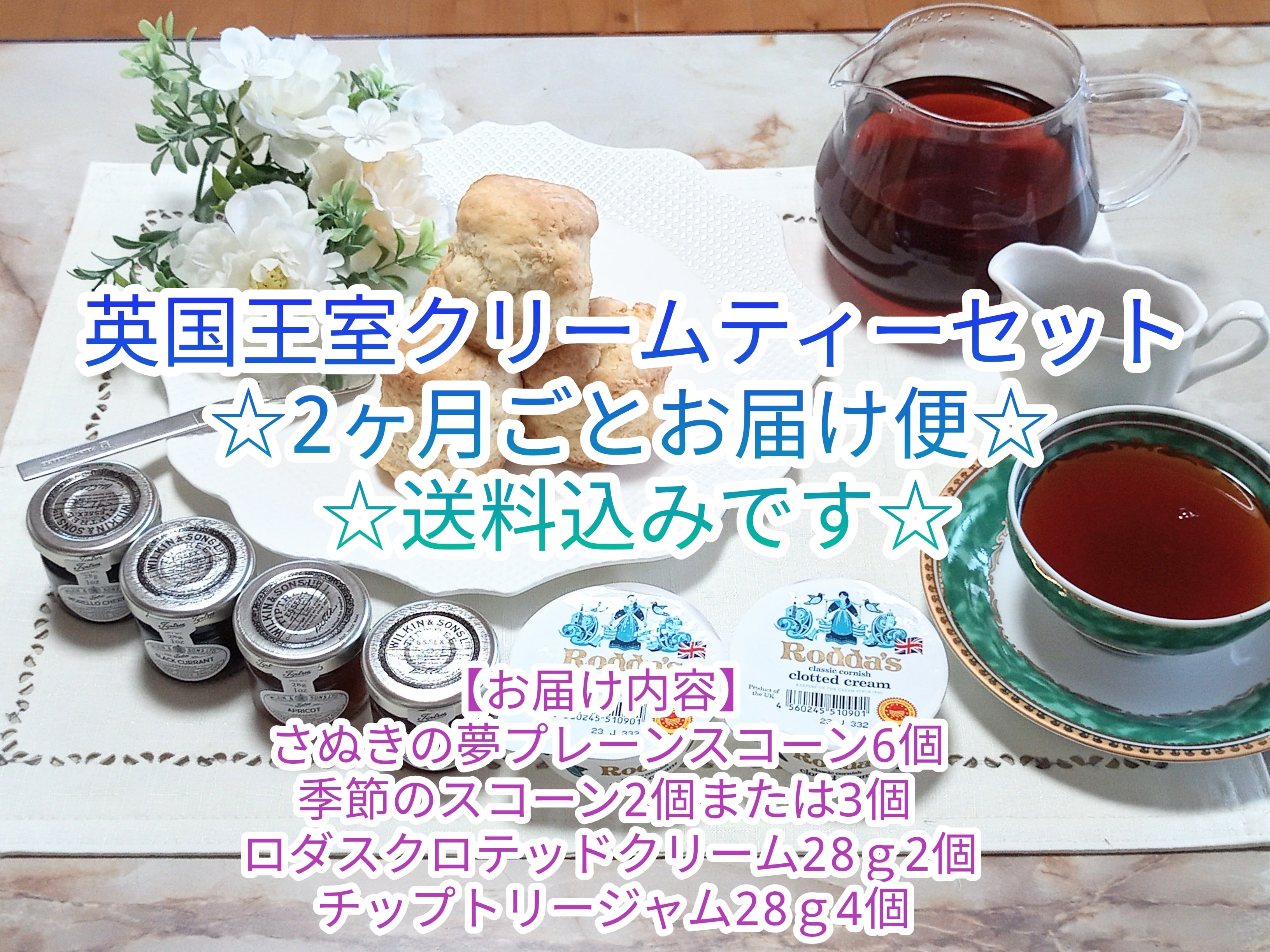 英国王室クリームティーセット 2ヶ月ごとお届け便(プレーン6個+季節のスコーン3個+英国ロダス コーニッシュクロテッドクリーム28g×2個+英国王室御用達チップトリージャム×4個) | Seto Scone (瀬戸の手造りスコーン)
